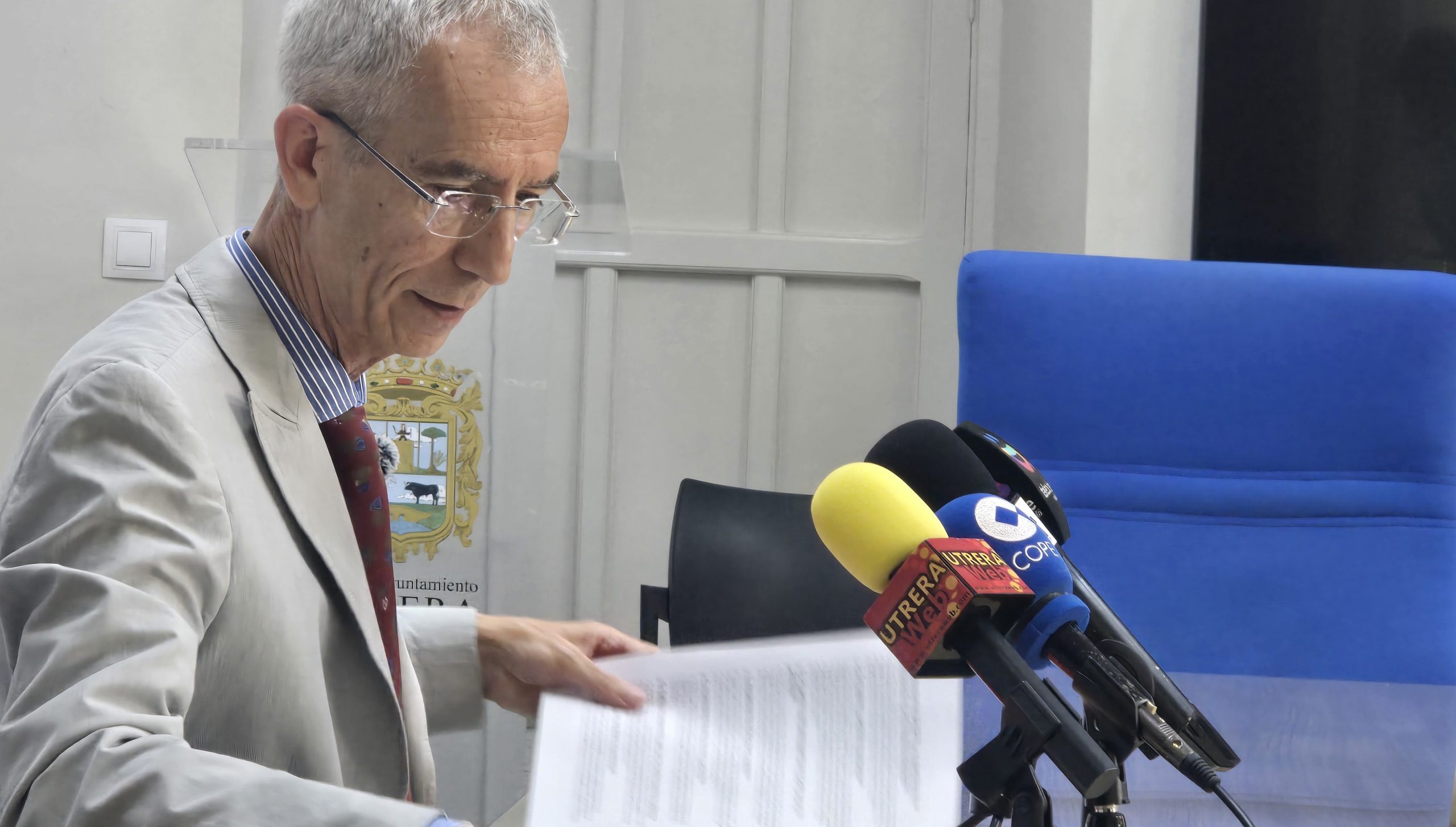 El alcalde de Utrera, Francisco Jiménez, ha comparecido hoy en rueda de prensa para responder a los que ha calificado como “disparates” del portavoz del PSOE y ex-alcalde de Utrera, José Mª Villalobos, con respecto al contrato de la recogida de basura y limpieza viaria del municipio.