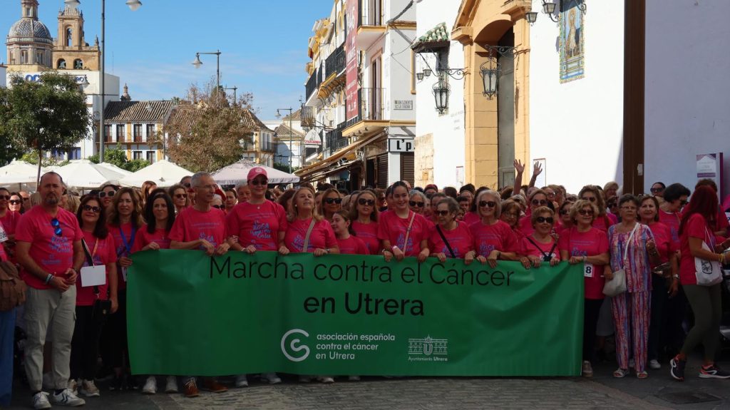 Utrera volvió a teñirse de rosa este domingo con motivo del Día Mundial de la Lucha contra el Cáncer de Mama. Más de 1.200 personas participaron en la cuarta edición de la Marcha Solidaria organizada por el Ayuntamiento de Utrera, a través de la Delegación de Bienestar Social e Igualdad, en colaboración con la Asociación Española Contra el Cáncer (AECC) de Utrera.