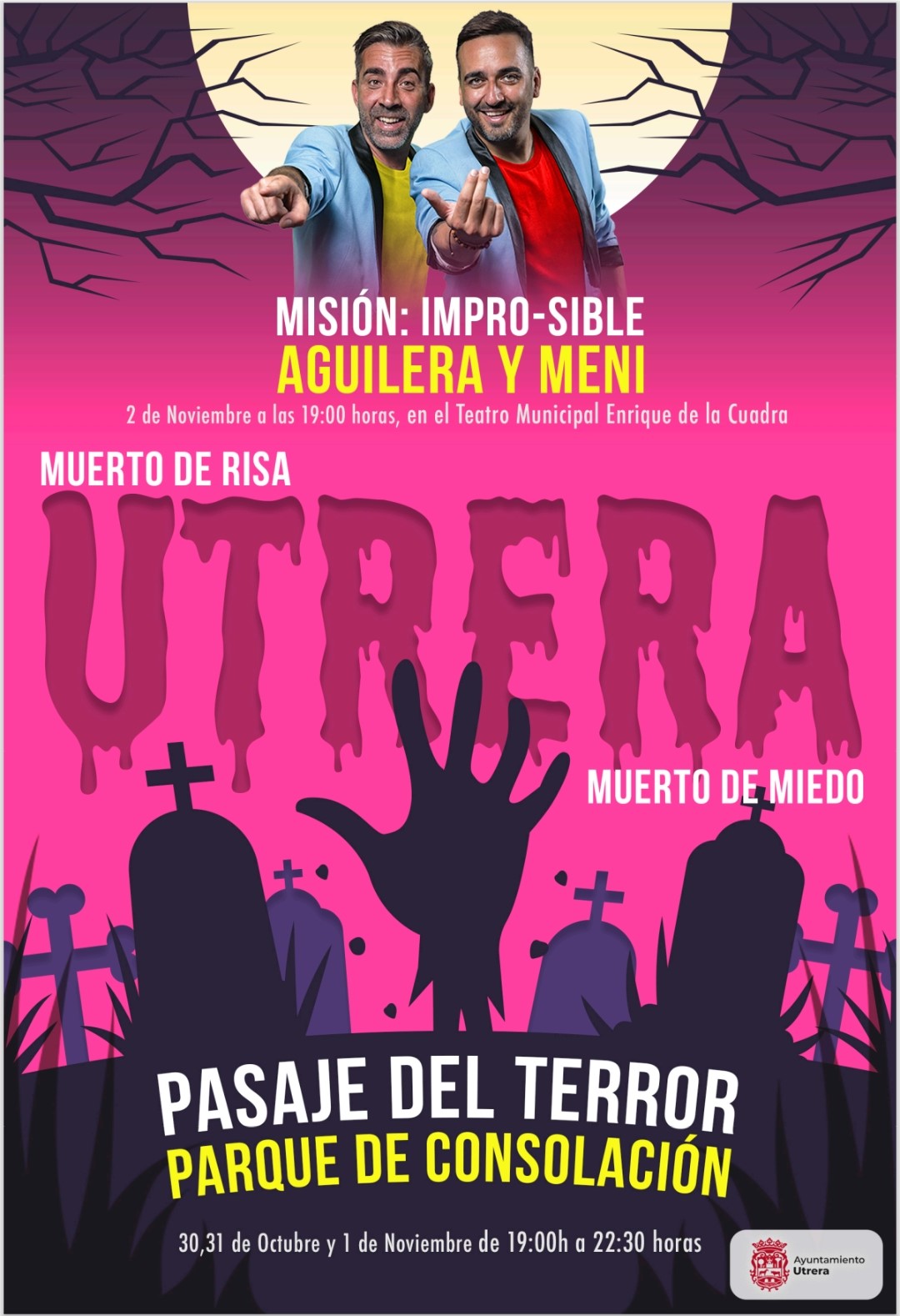 El delegado de Juventud, Israel Bascon, ha señalado que “la intención es que con estas propuestas la gente disfrute del puente de noviembre en nuestra ciudad, con una programación que resulte atractiva a los más jóvenes que son los que más celebran Halloween”, el delegado añade que “este tipo de iniciativas sirven también para que nos visiten personas de otras poblaciones, haciendo de Utrera un lugar para disfrutar en el puente de Todos los Santos”.