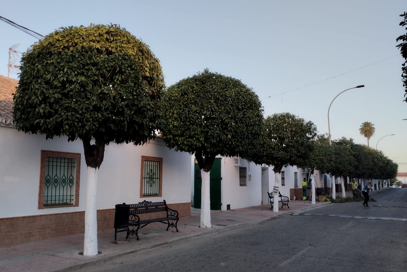 Guadalema de los Quintero: trabajos de desbroce y acondicionamiento de árboles en toda la pedanía.